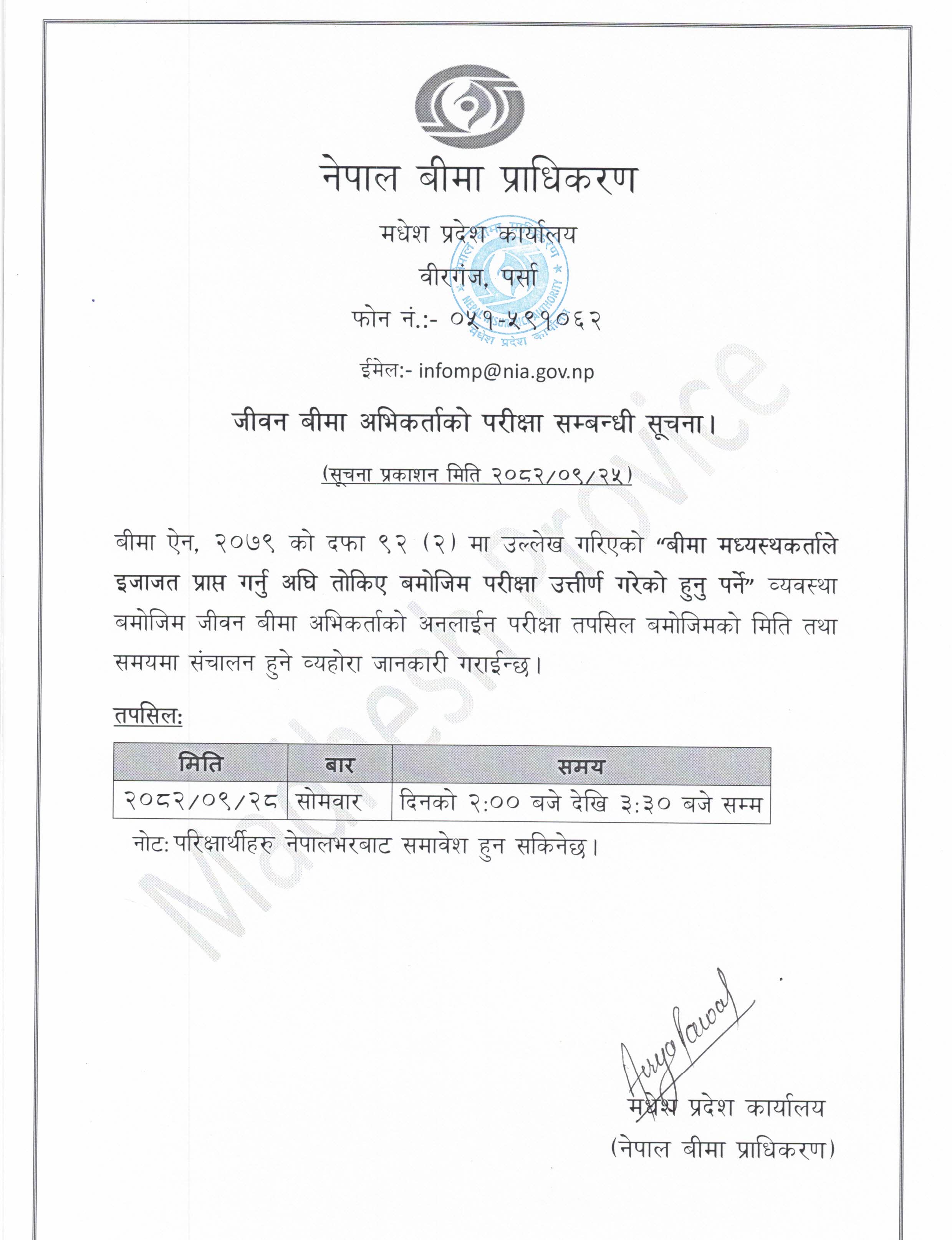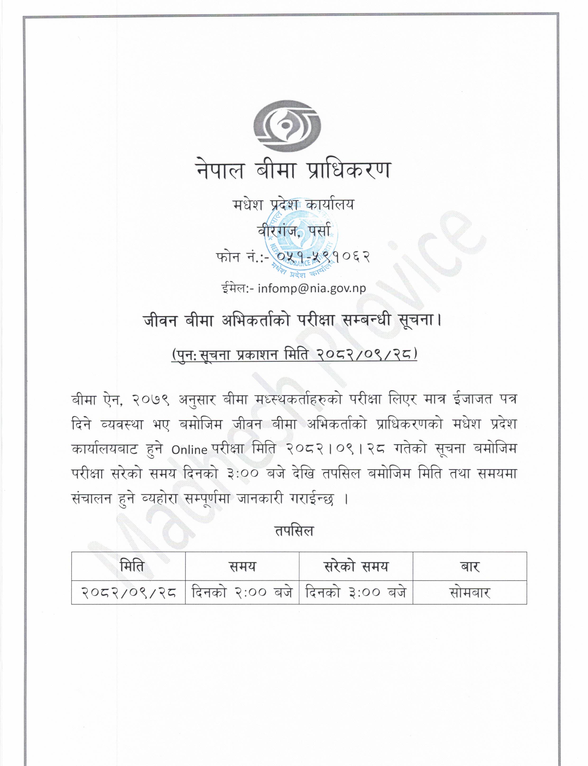 file जीवन बीमा अभिकर्ताको परीक्षा सम्बन्धी सूचना 2082.10.12 file 2026-01-22 eye Preview