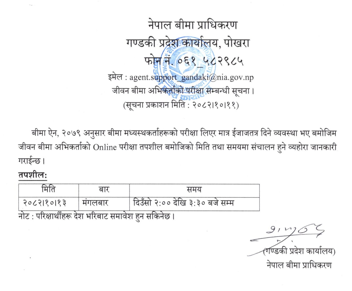 file जीवन बीमा अभिकर्ताको परीक्षा सम्बन्धी सूचना।2082-09-28 file 2026-01-12 eye Preview