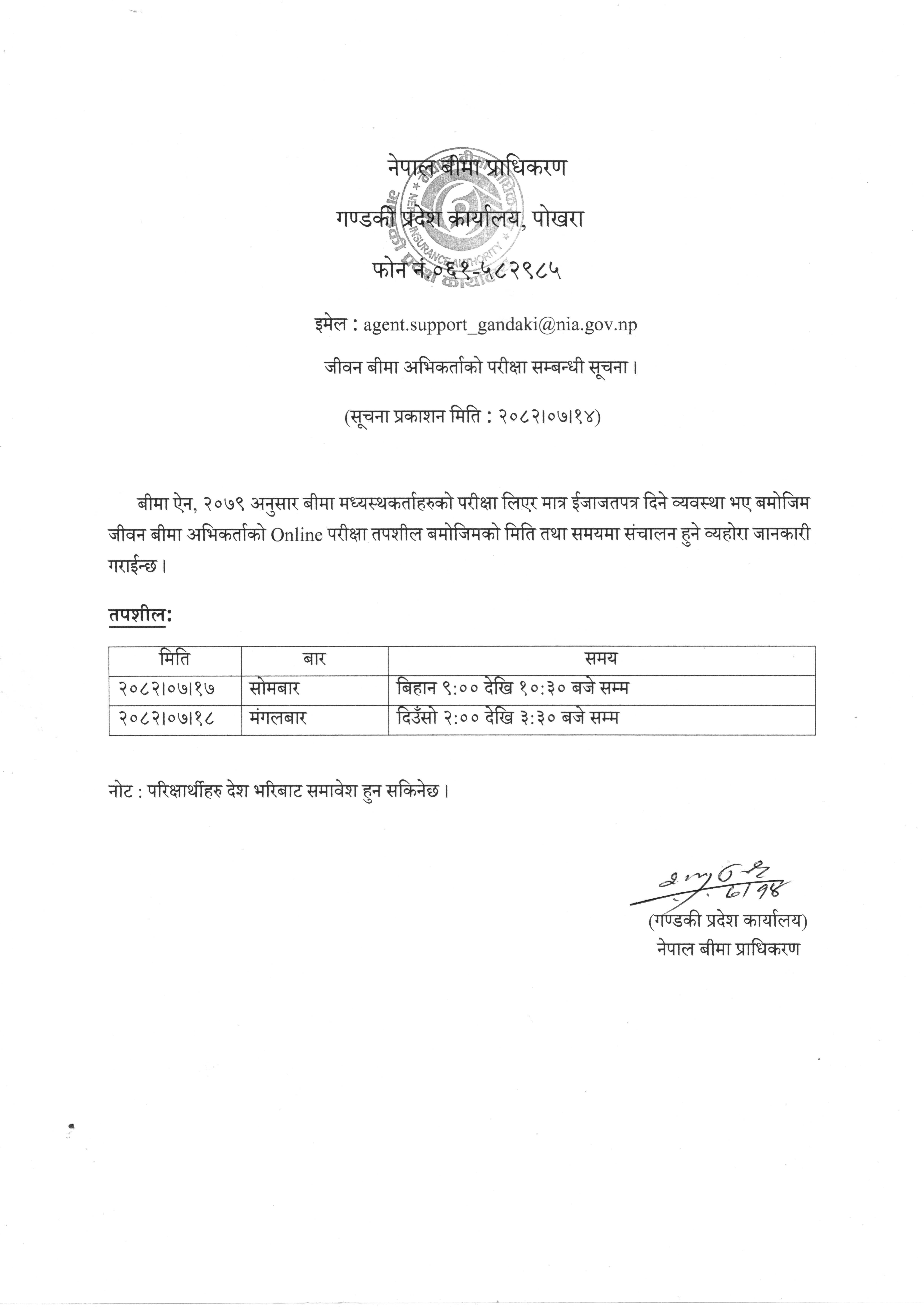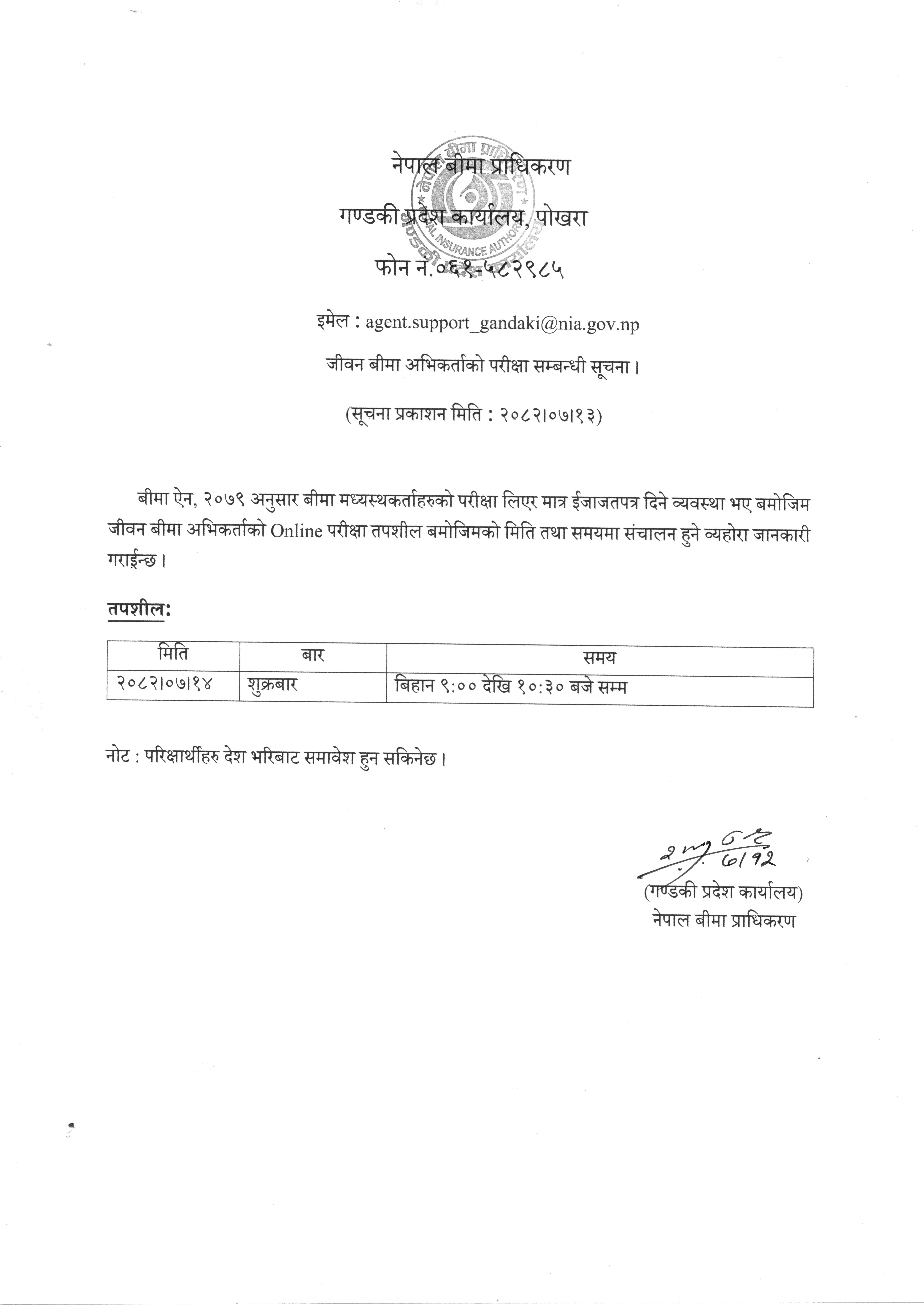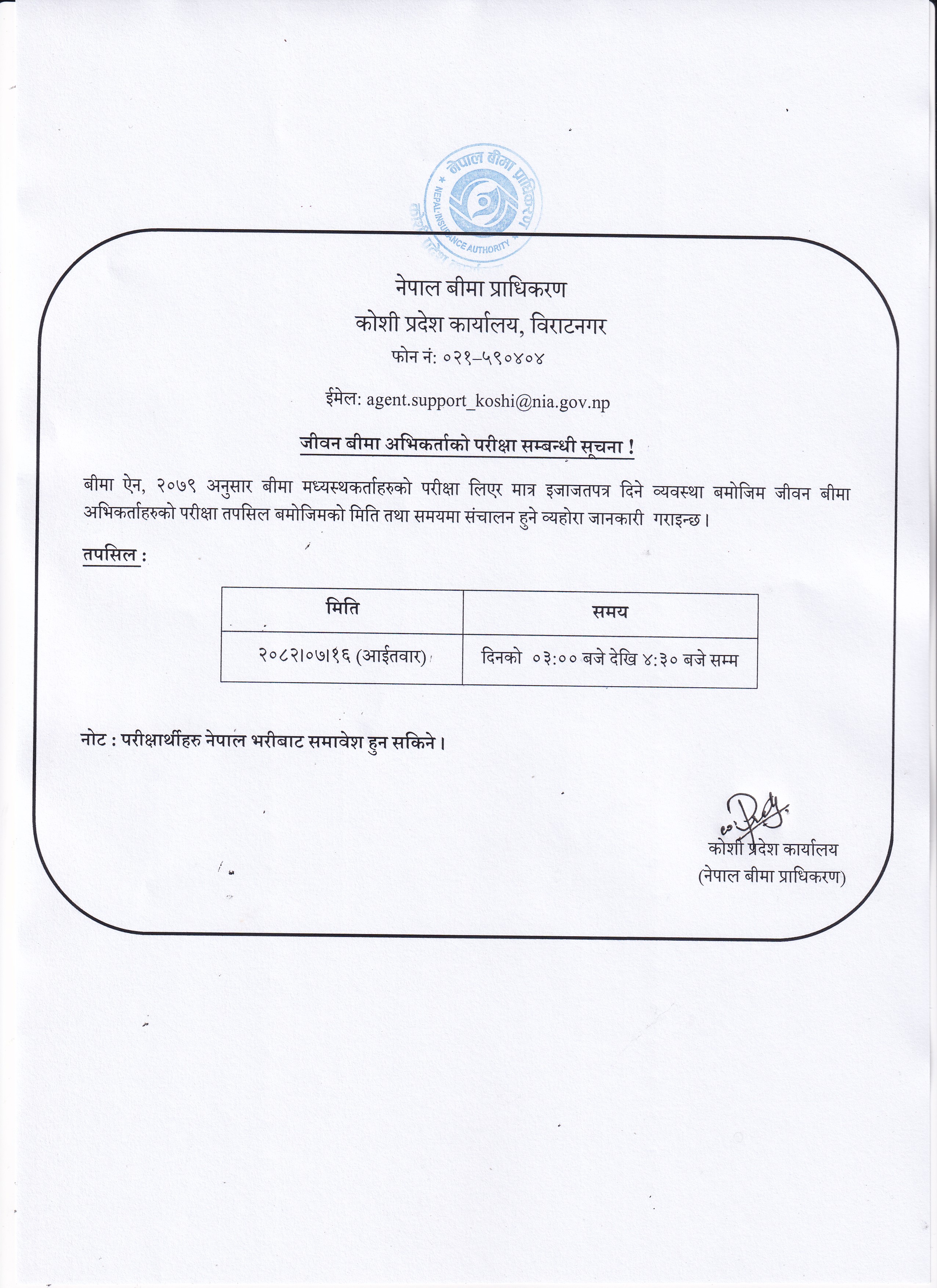 file जीवन बीमा अभिकर्ताको परीक्षा सम्बन्धी सूचना। file 2025-10-10 eye Preview