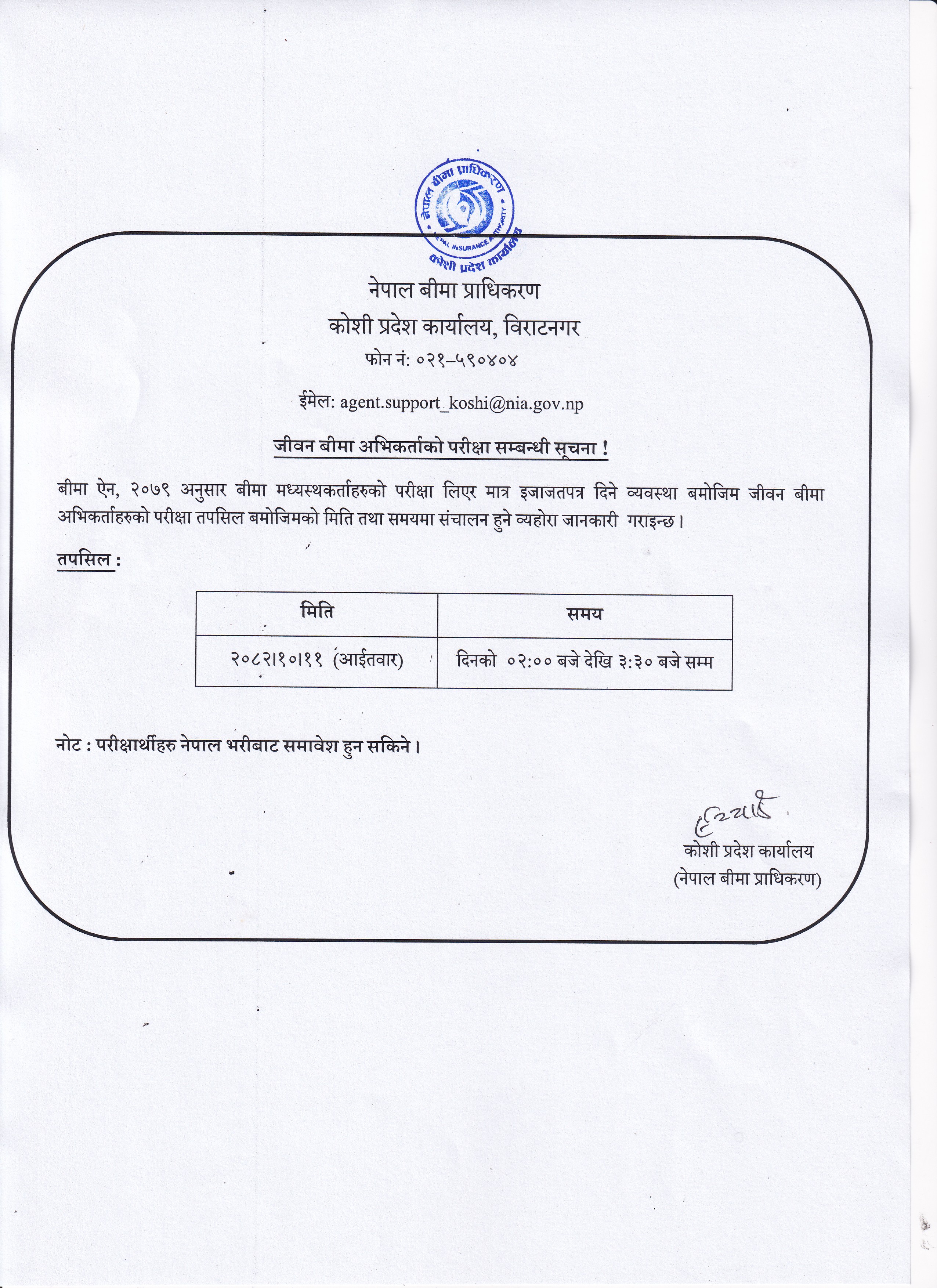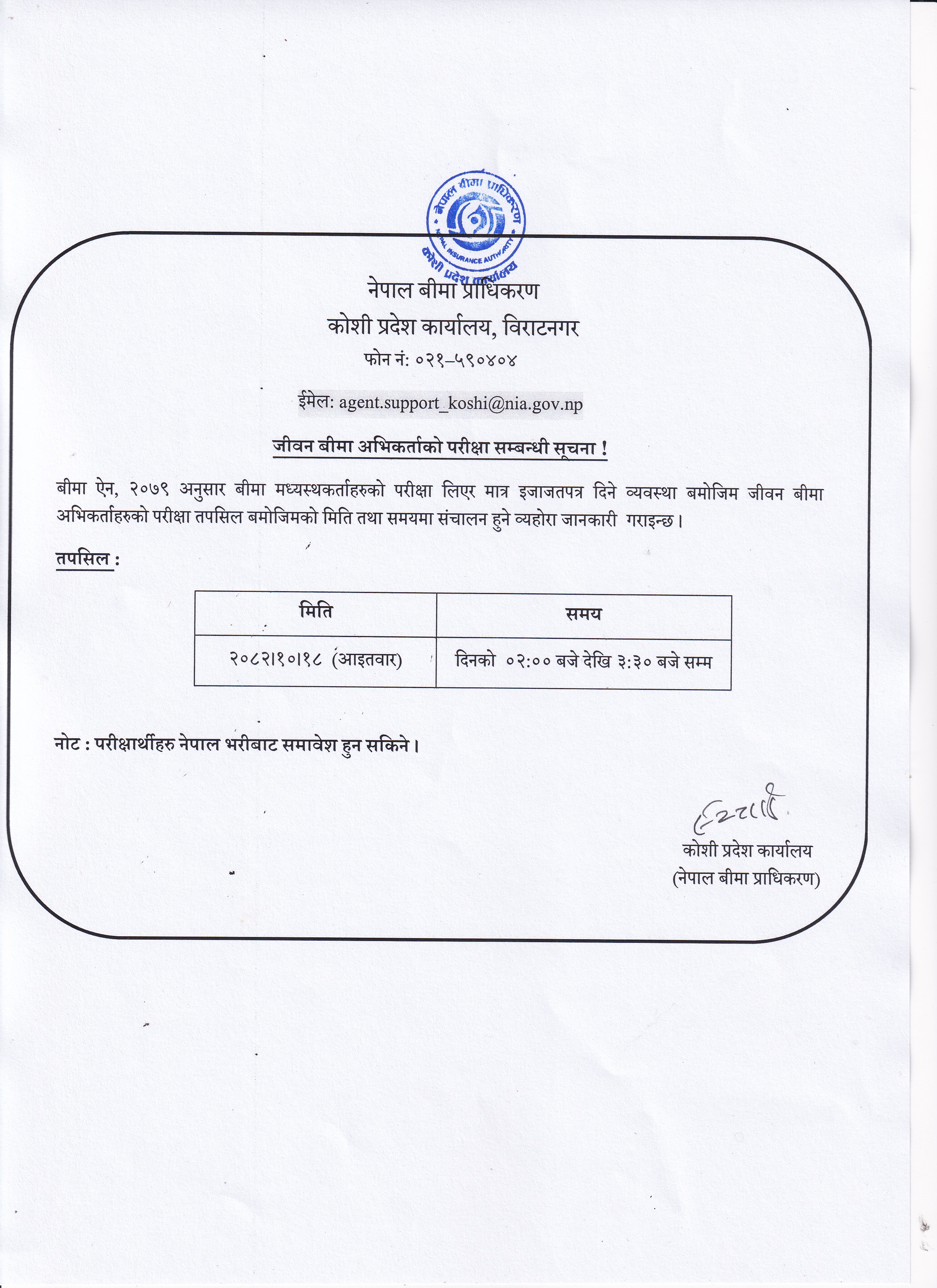 Agent Exam Notice