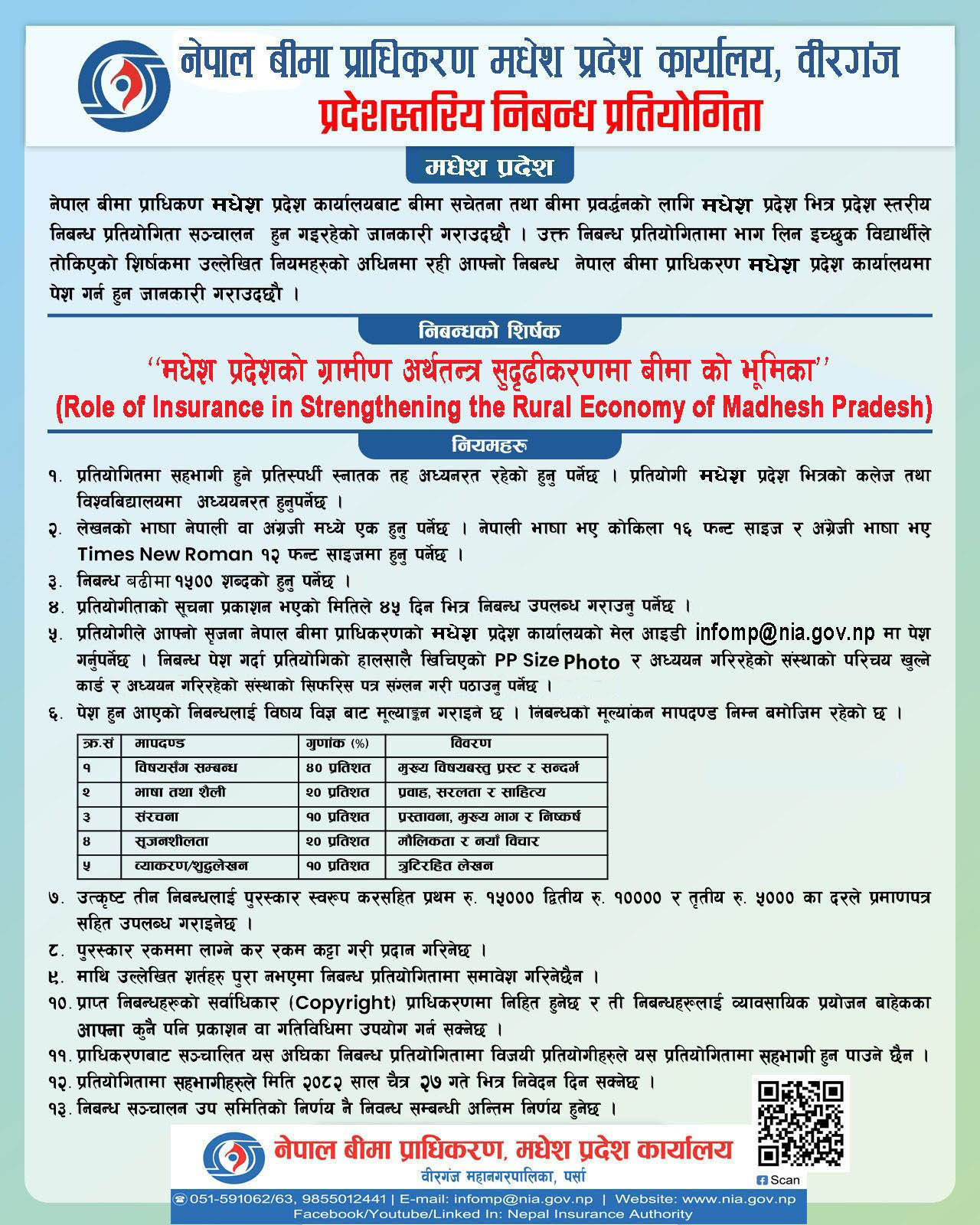 मधेश प्रदेश स्तरीय निवन्ध प्रतियोगिता सम्बन्धी सूचना।